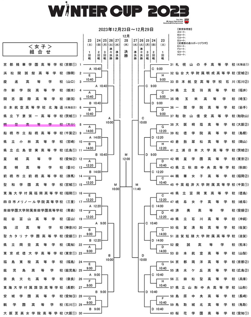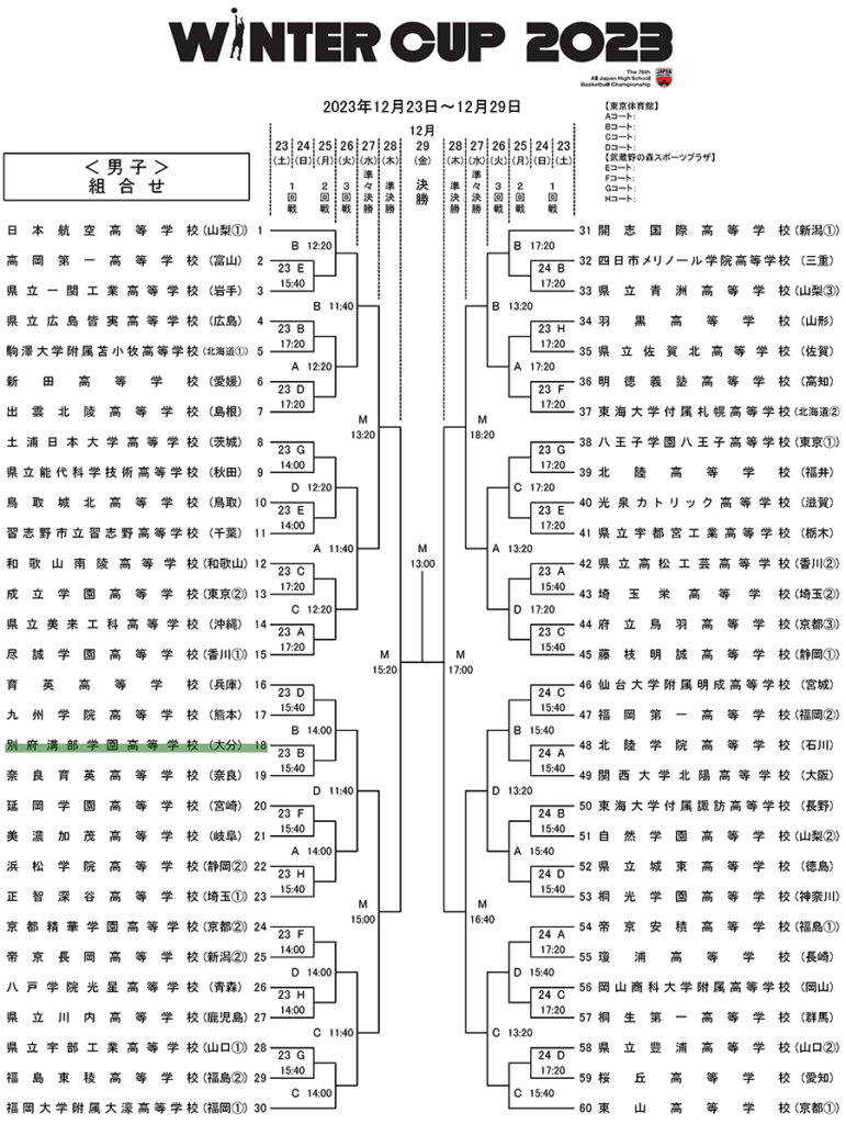 SoftBank ウインターカップ2023 令和5年度 第76回全国高等学校バスケットボール選手権大会の組み合わせをお知らします。