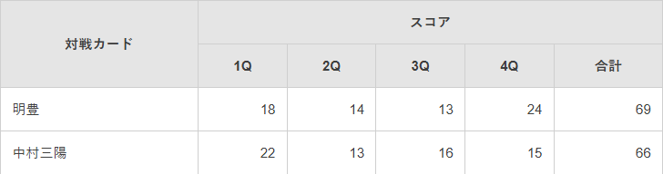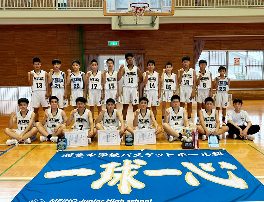 明豊中学校(男子)は、予選を1位通過し、2日目の決勝トーナメントに進出。順調に初戦突破し、準決勝に九州トップの中村学園三陽中学校と激突、攻守で粘りをみせ、厳しい戦いの接戦を制し、決勝戦に進出。