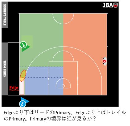 - エッジ付近の3ポイントシュートに対し、トレイルとリードでプレイを捉えているのは大切なこと。その後、リバウンドに視野を移すタイミングを考える。2人でショットを捉えたままだと、リバウンドをセンターレフリーが1人で見なければならない。ゲームの中で改善をすべき。